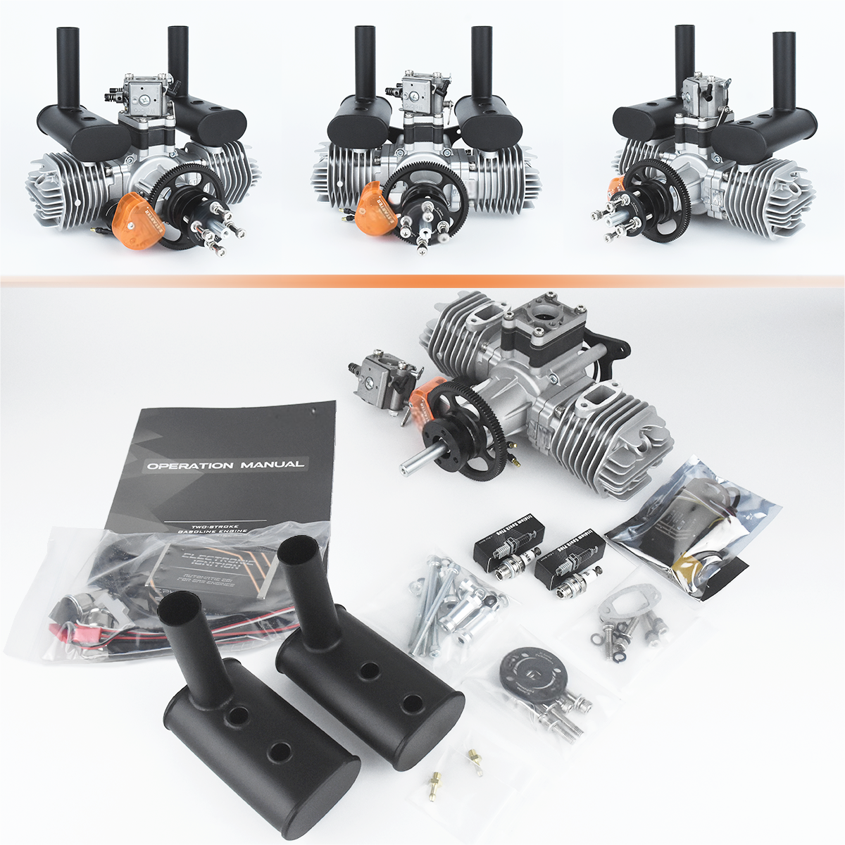 3I 76cc B2 2-cylinder gasoline engine with electric starter